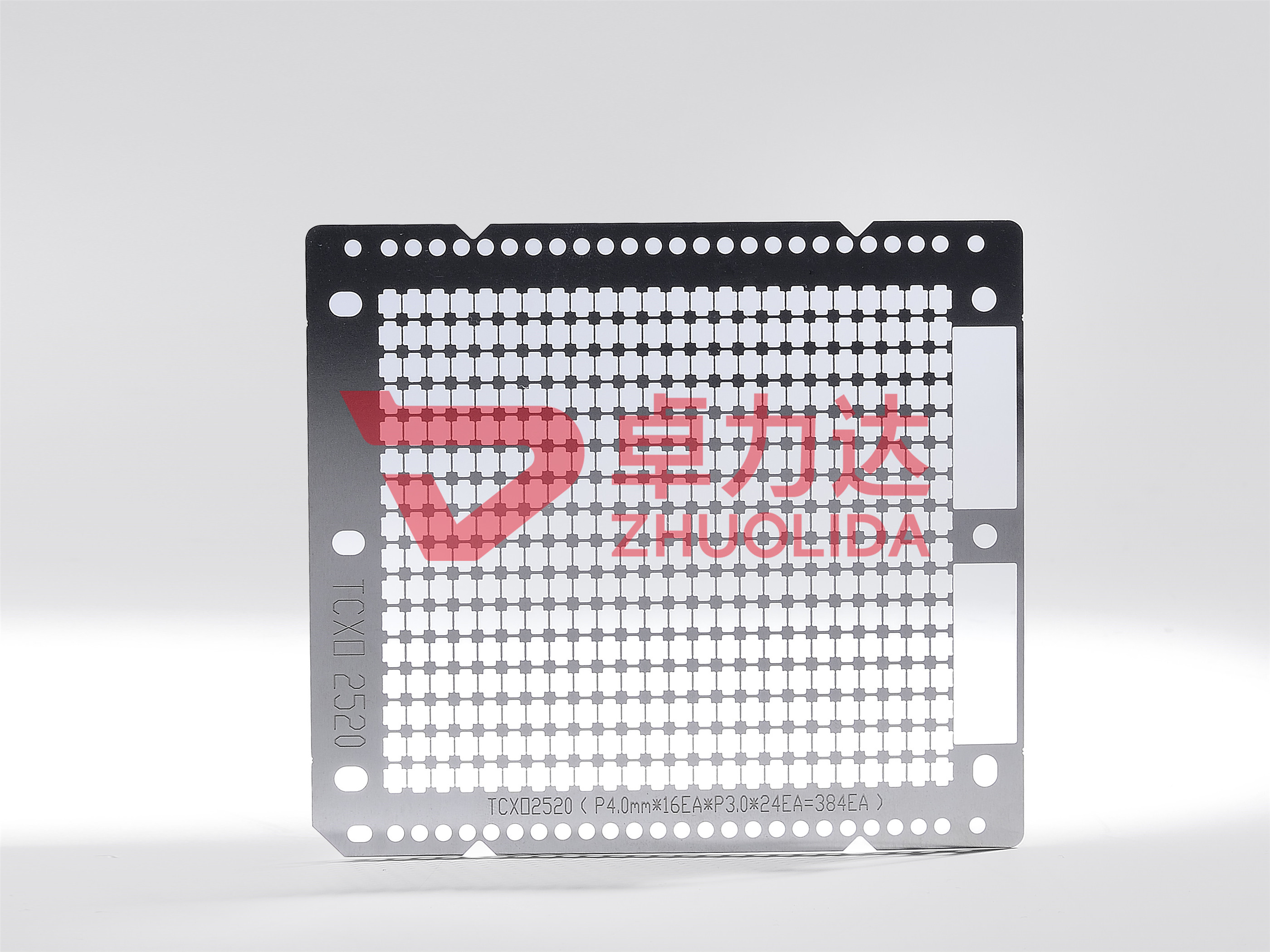 | 此款產品特點: | 化學蝕刻工藝配合真空擴散焊接貼合的托盤載具產品平整度可以達到0.02mm,孔徑可以做到0.08mm,根據材料厚度,孔徑公差可以控制到+/-0.01mm,線條均均,無毛剌,無缺口,針對精密產品,可以很好的進行組裝配套操作。 |